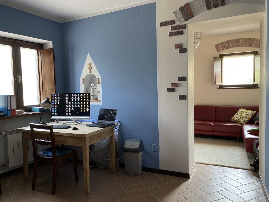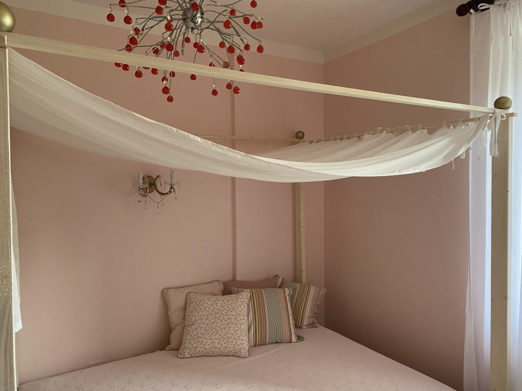 Das blaue Zimmer und das dahinterliegende Kaminzimmer bilden mit der Küche und em Wohnzimmer das Erdgeschoß. Terracottaböden und eine Steintreppe geben den Weg frei in die zweite Etage, die die Schlafräume beherbergt. Jeweils zwei Zimmer in Hellblau und rosa für zwei Paare sowie ein Zimmer mit 4 Betten (2+2 Etagenbetten) hefen uns gute Freunde angemessen aufzunehmen Das geräumige Gemeinschaftsbad teilen wir uns alle gemeinsam mit Dusche, Bidet, Toilette und Waschmaschine.